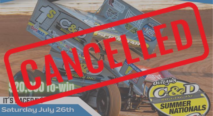 Mechanicsburg – Afternoon rains hit Williams Grove Speedway, causing oval and World of Outlaws officials to cancel the Saturday night, June 26 C & D Rigging Summer Nationals for sprint cars.